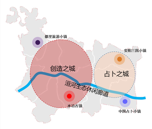 殷都区"一河两城四小镇"空间发展策划概念图